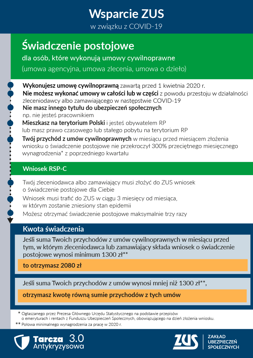 - RSP-C – wniosek o świadczenie postojowe dla umów cywilnoprawnych - wypełnia zleceniodawca lub zamawiający,