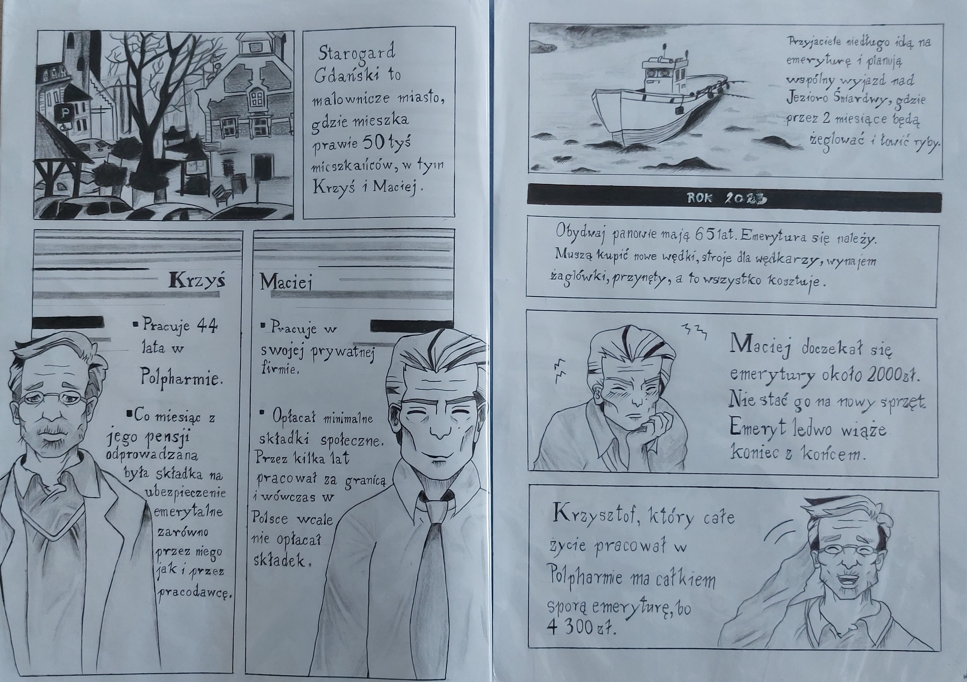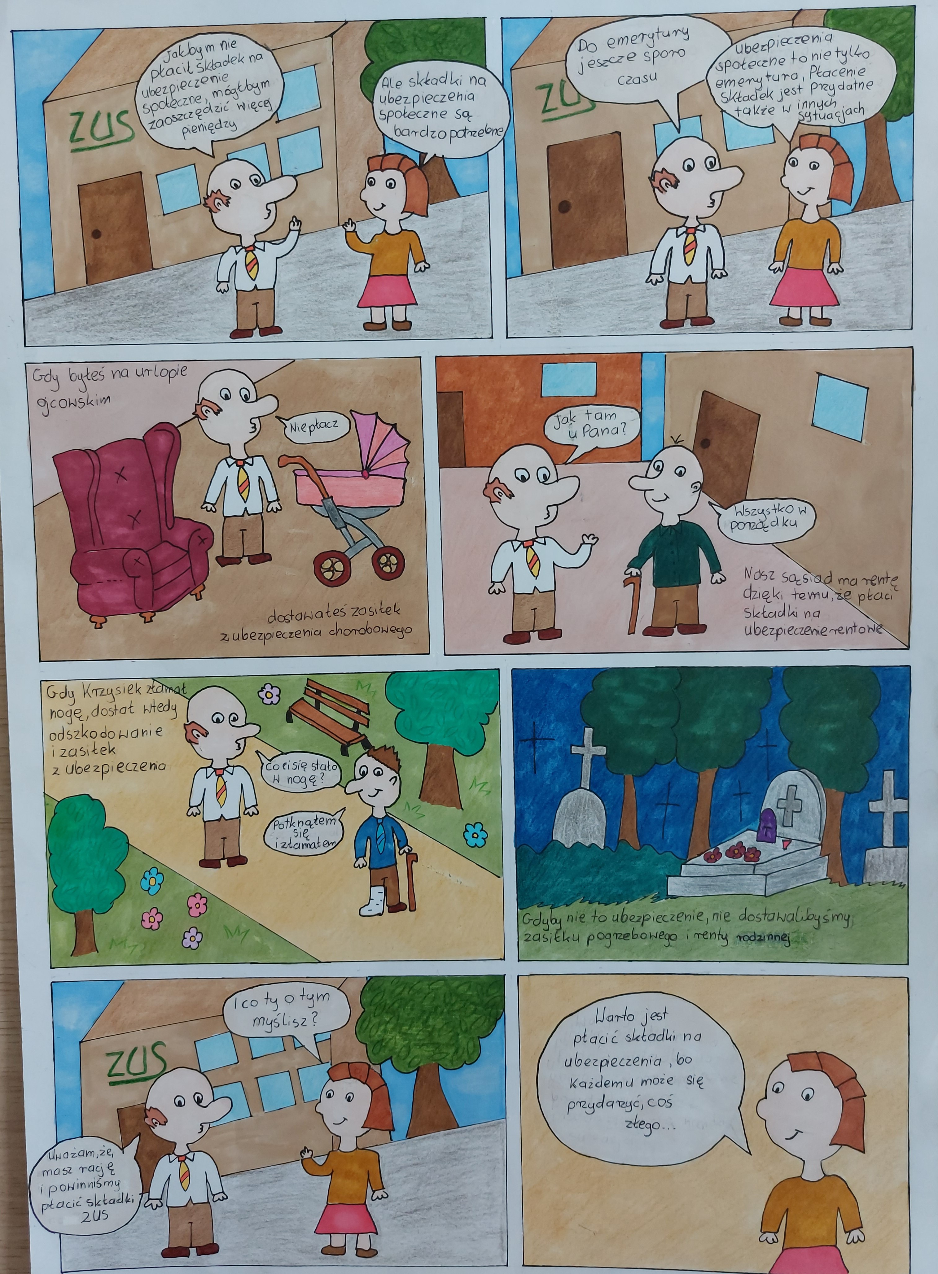 Zadaniem uczestników projektu było wykonanie filmu, plakatu lub komiksu, który wyjaśnia dlaczego ubezpieczenia społeczne są ważne.